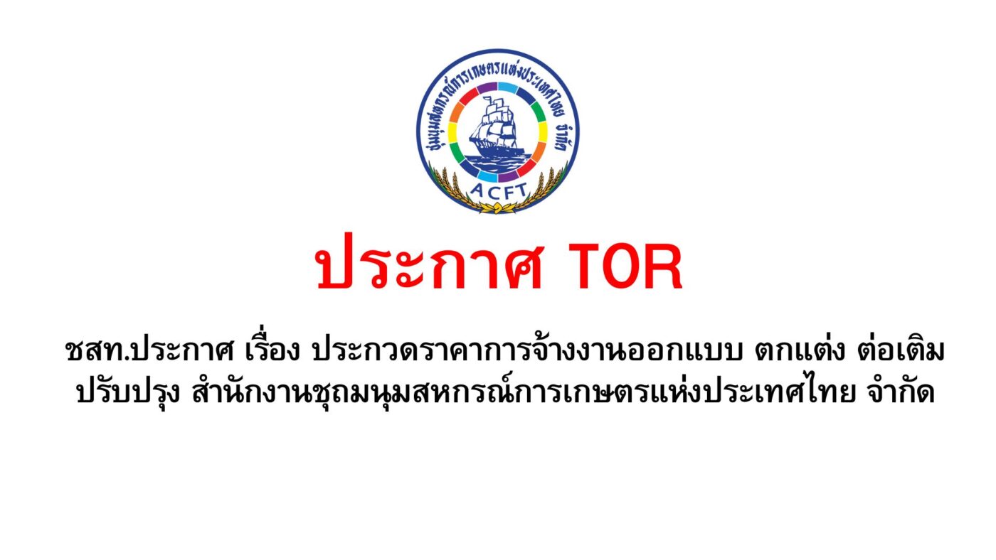 ชสท.ประกาศ เรื่อง ประกวดราคาการจ้างงานออกแบบ ตกแต่ง ต่อเติม ปรับปรุง สำนักงานชุถมนุมสหกรณ์การเกษตรแห่งประเทศไทย จำกัด