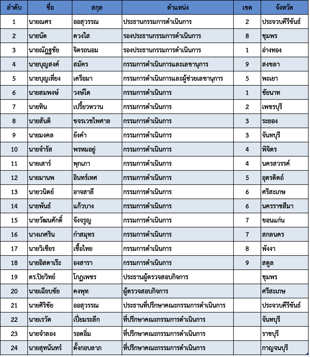 รายชื่อคณะกรรมการดำเนินการ ชสท.